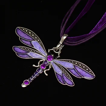 Dragonfly Vintage Ribbon Cord Purple Rhinestone Alloy Necklace Sporty European American Style Children's Unisex Foreign Trade