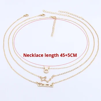 12 Zodiac Sign Diamond-Encrusted Alloy Necklace Set with Bamboo Chain Retro Letter Symbol Three-Piece Unisex Jewelry Set
