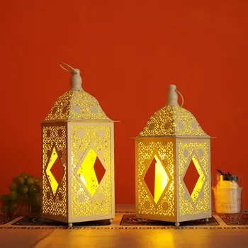 Handheld Moroccan Iron Art Lantern New Cross-Border Festival Atmosphere Candle Holder Hollow Metal Candle Stand Ornament Craft