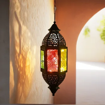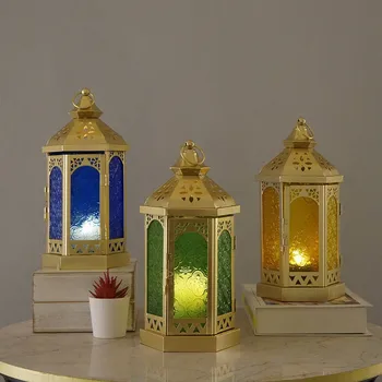 Moroccan Iron Art Hexagonal Retro Candle Holder Handheld Lantern for Cross-Border Festival Decor Middle Eastern Ornament